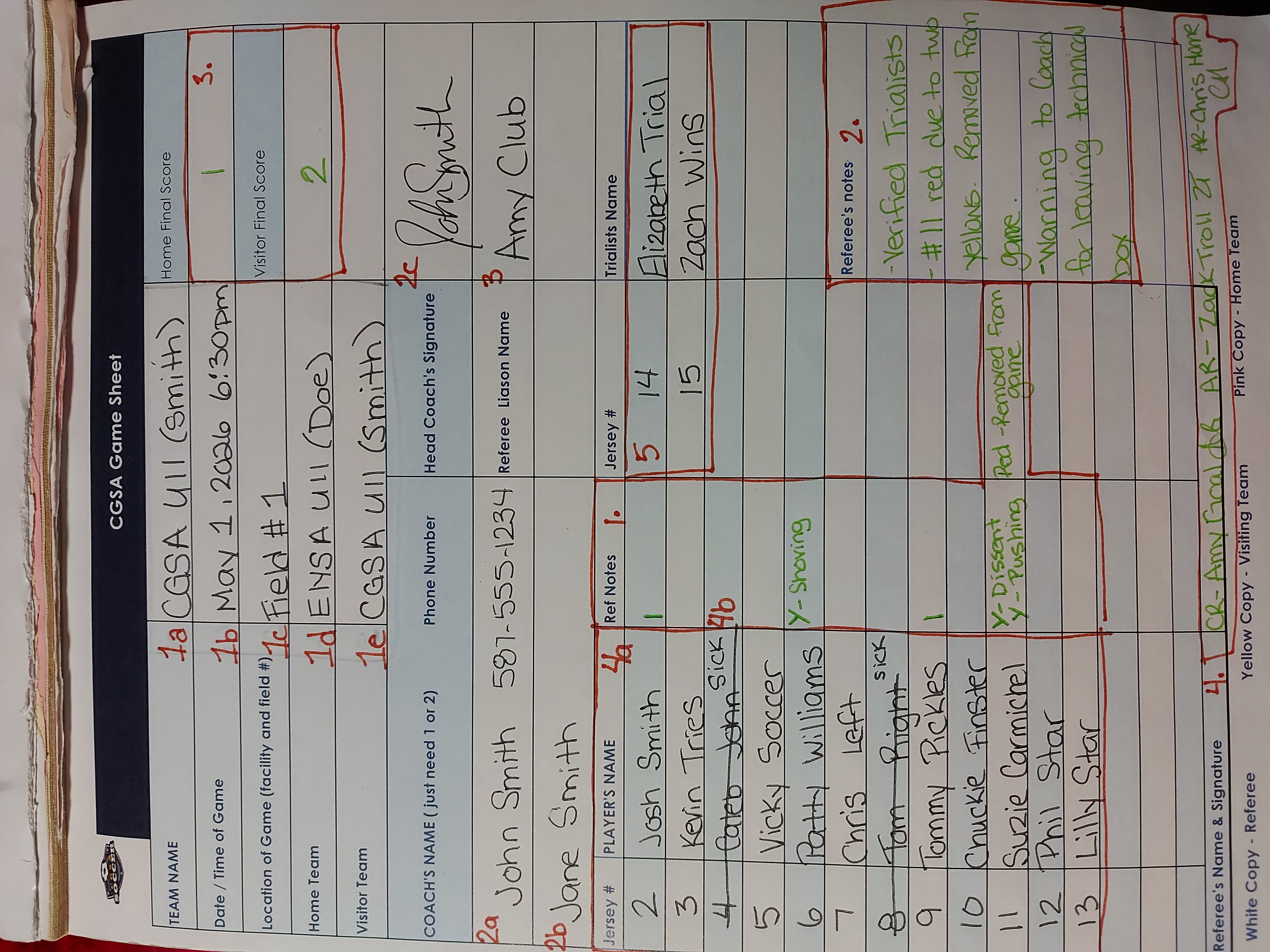 4) Referees Name/Signatures: Must be labelled AR or CR and have a printed name and signature